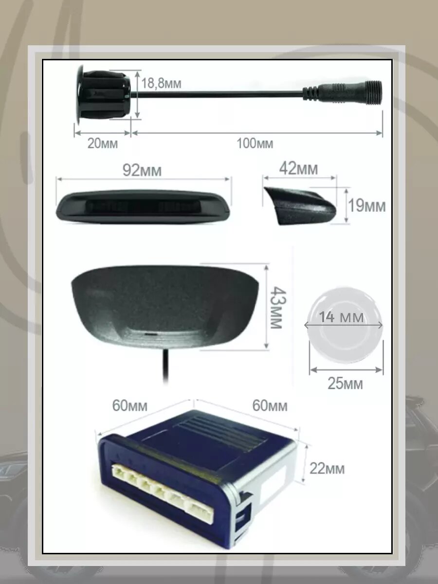 | Минусы: | не написано как подключается в инструкции, из-за этого перепутал местами сонары, у них провода с буквенным обозначением, и на блоке подключаются по буквам, так что подключил просто зная какой где |