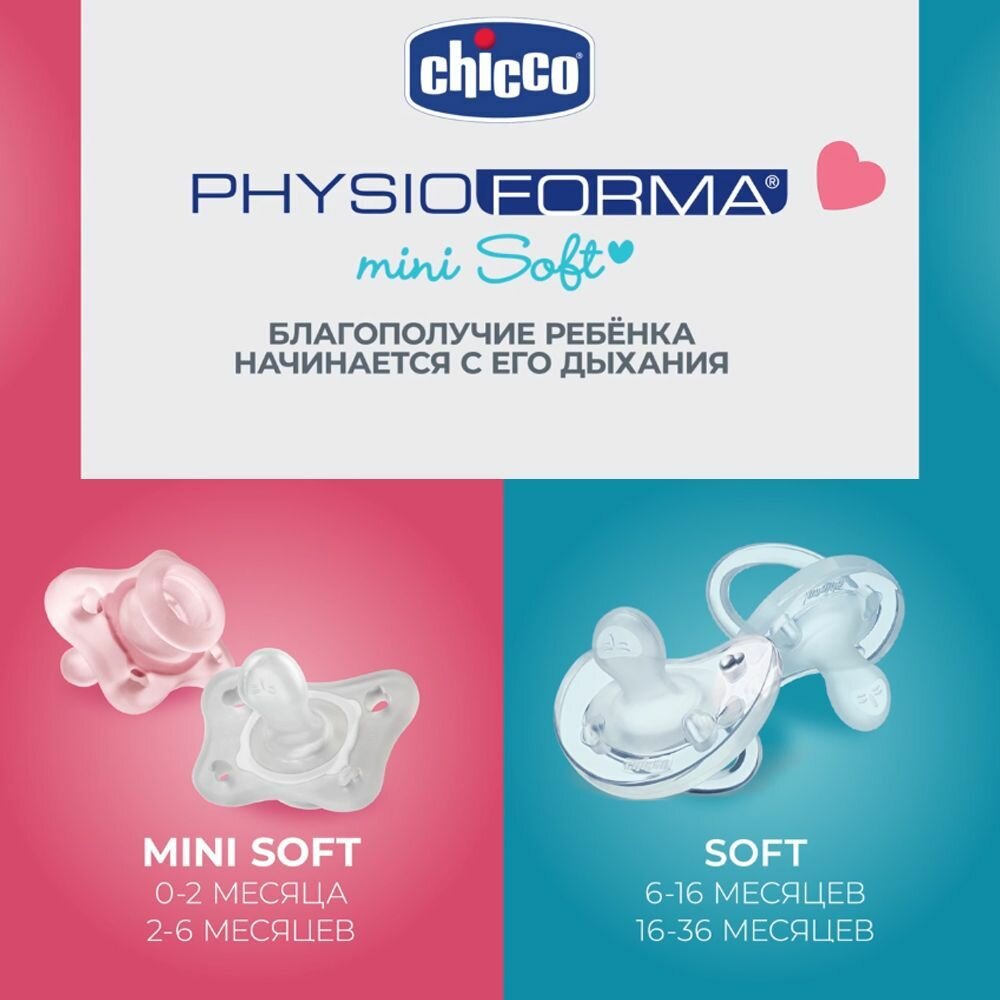 CHICCO Physio Soft Mini Пустышка силикон 2шт, 0-2м
