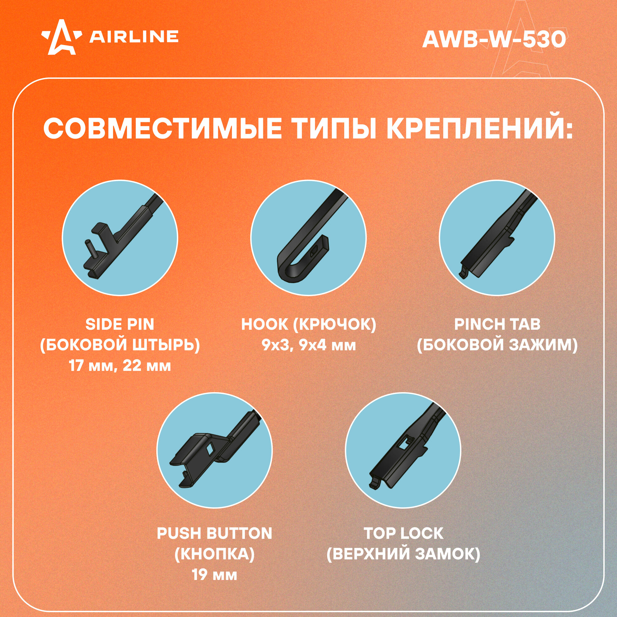 AWBW530 AIRLINE Щетка стеклоочистителя зимняя 530мм Multi-mount 5 крепл.