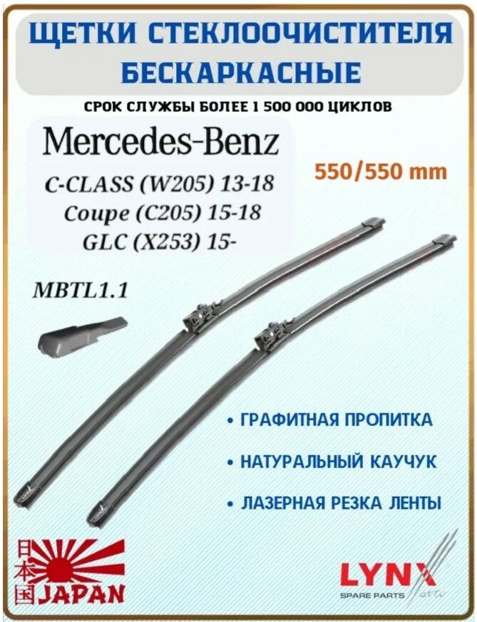 Комплект бескаркасных щеток стеклоочистителя 550 мм (22') / 550 мм (22') MERCEDES-BENZ C-Class 21> LYNXauto XF5555W
