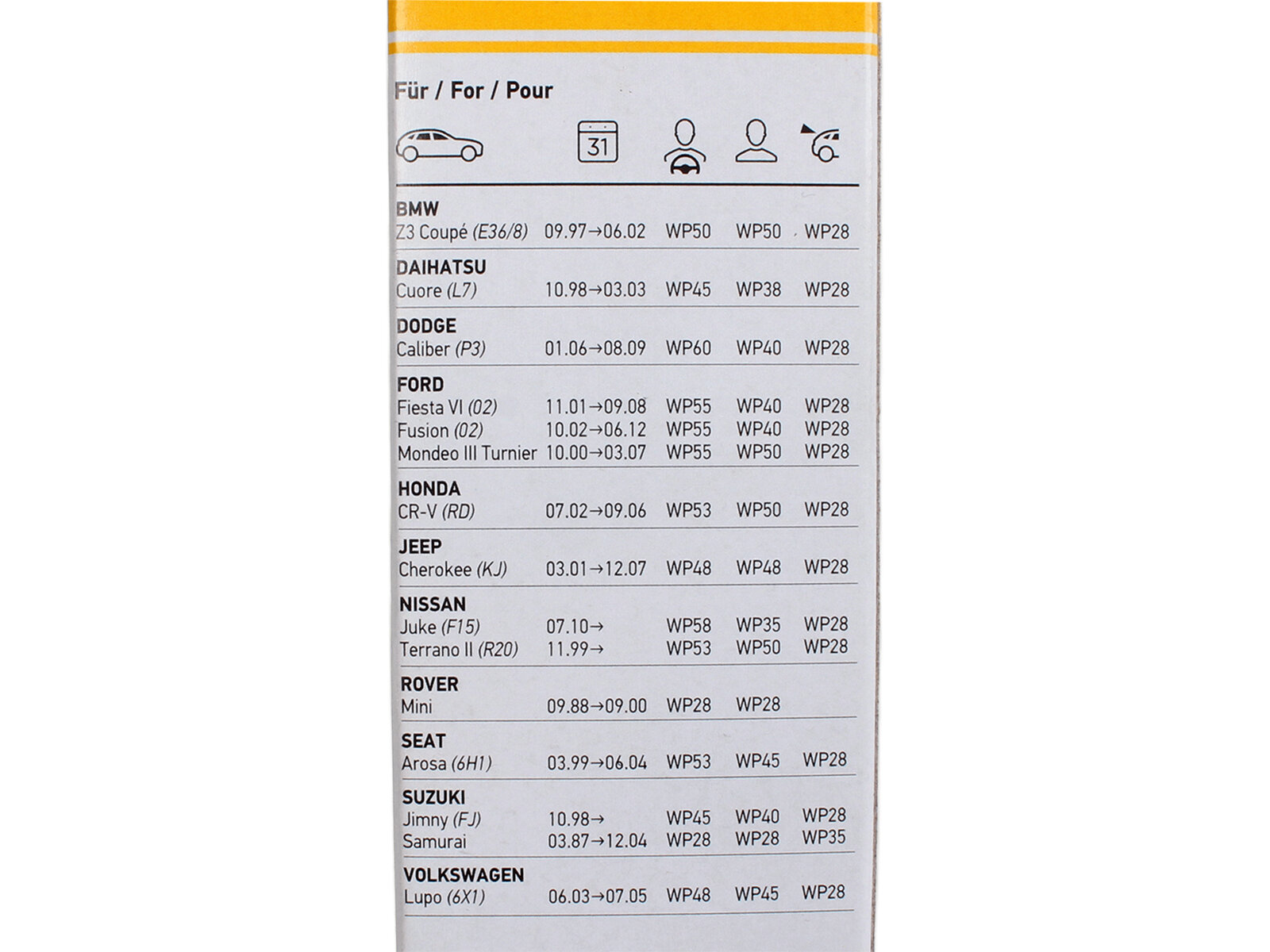 | Модель автомобиля | Ford C-Max / Ford Focus / Jeep Cherokee / Mitsubishi Colt / Nissan Terrano / Ssang Yong Musso / Ssang Yong Korando / Ssang Yong Rodius / Suzuki Alto / Suzuki Liana / Volkswagen Polo / LADA 2104 / LADA 2121 / Fiat Cinquecento / Rover Mini / Daihatsu Charade / Suzuki Samurai / Vauxhall Agila / ЗАЗ-1102 Таврия |