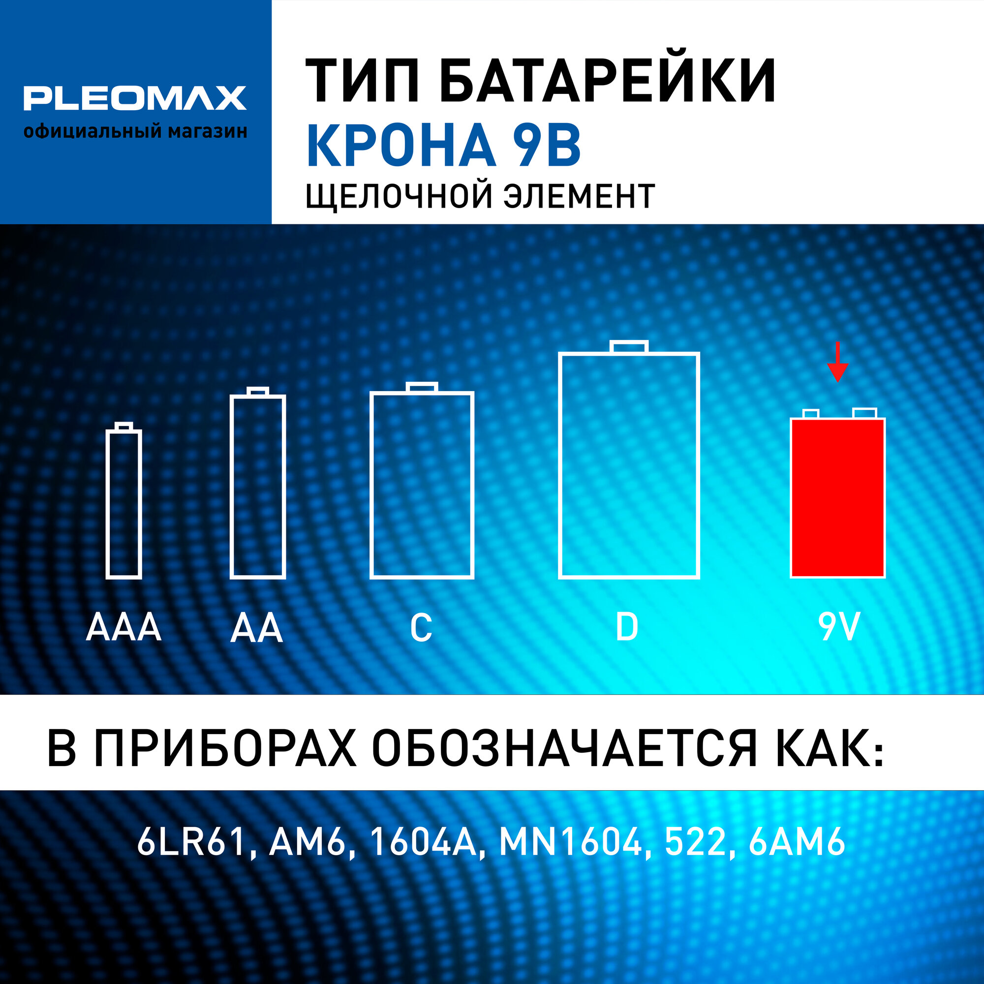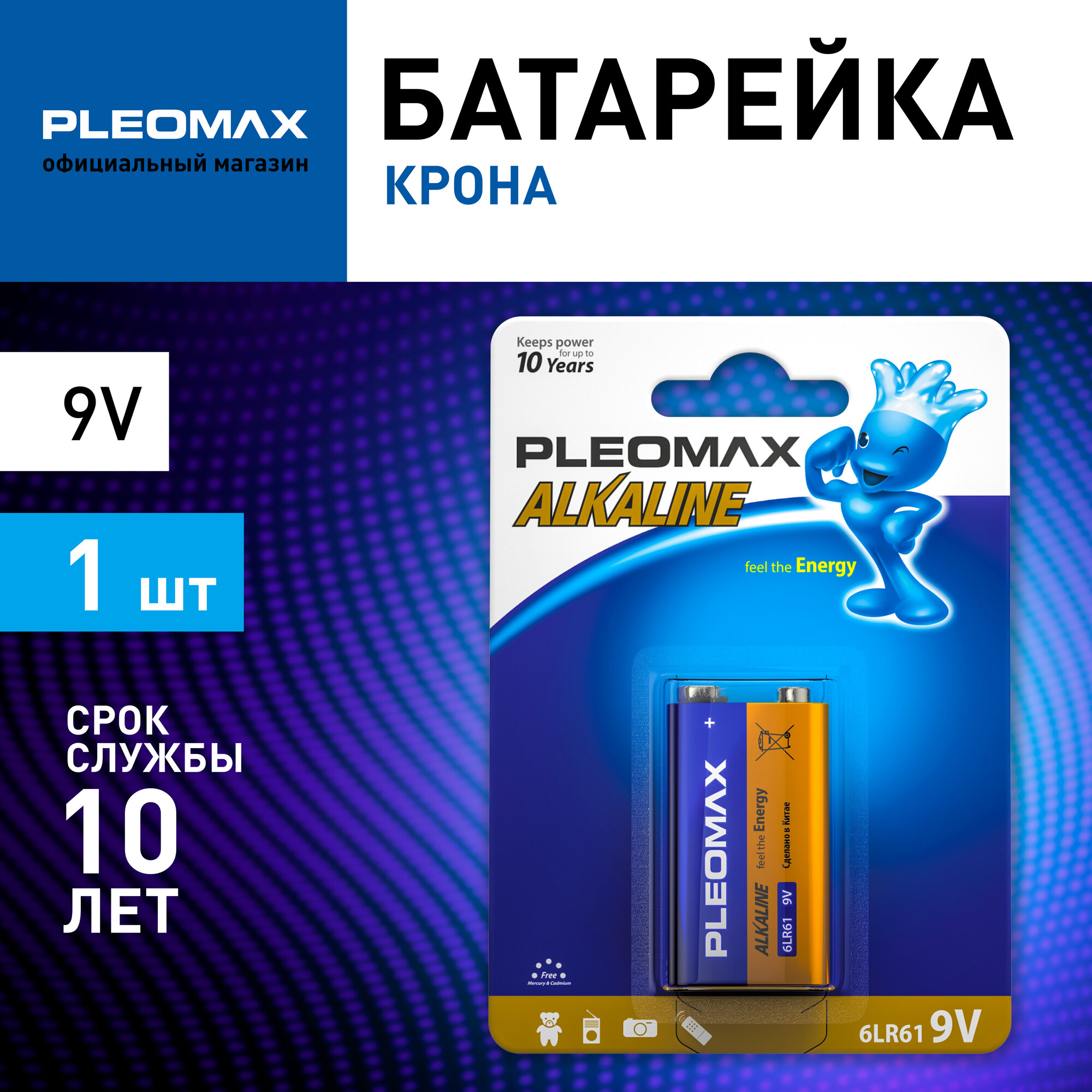 Батарейка Pleomax Alkaline 6LR61 (крона), в упаковке: 1 шт.