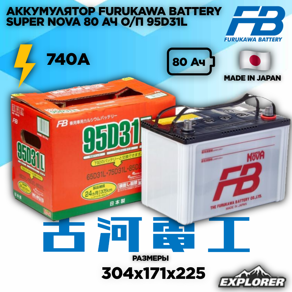 Купить Аккумулятор FURUKAWA BATTERY FB SUPER NOVA арт. 95D31L, Ёмкость 80 Ah, пусковой ток 740 А, 304x171x227
