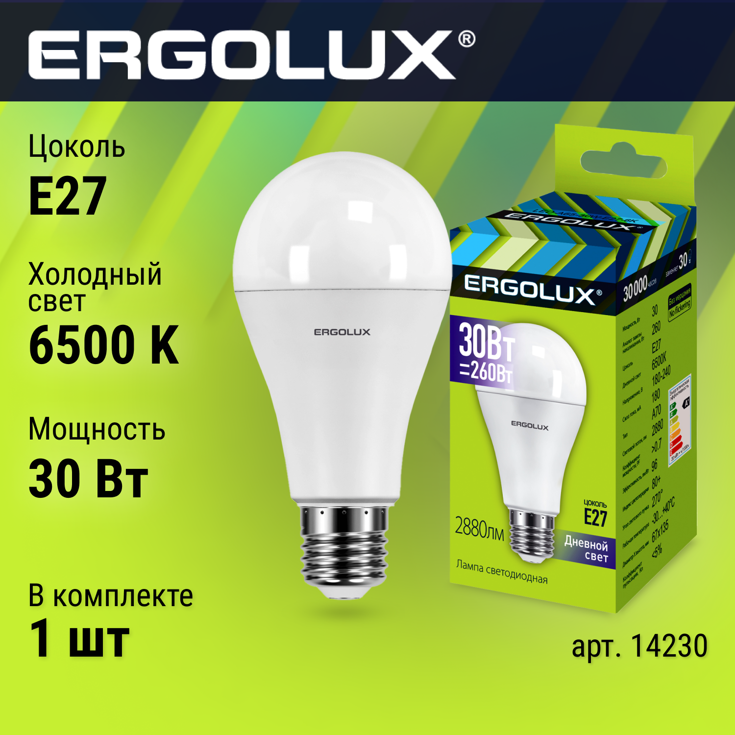 Лампа светодиодная А70 30W E27 6500K Ergolux