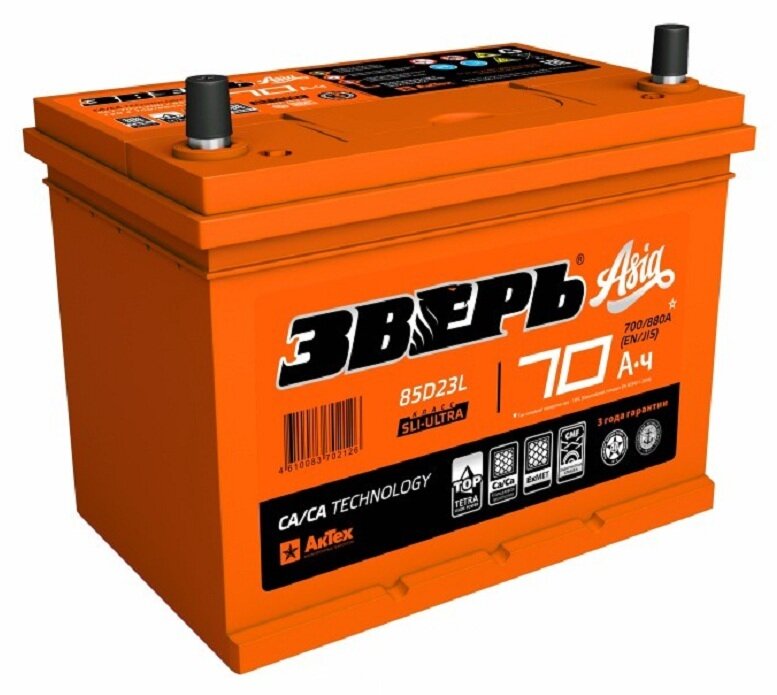 Аккумулятор автомобильный Зверь Asia 70 А/ч 700 А обр. пол. 85D23L Азия авто (231x175x221) с бортиком интересное: