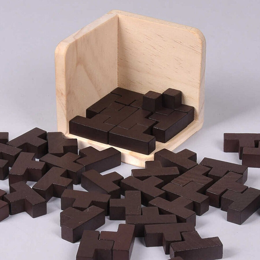 Головоломка тетрис Magic Tetris Cube развивающая пазл 3D Wood IQ Puzzle деревянная (54 детали)