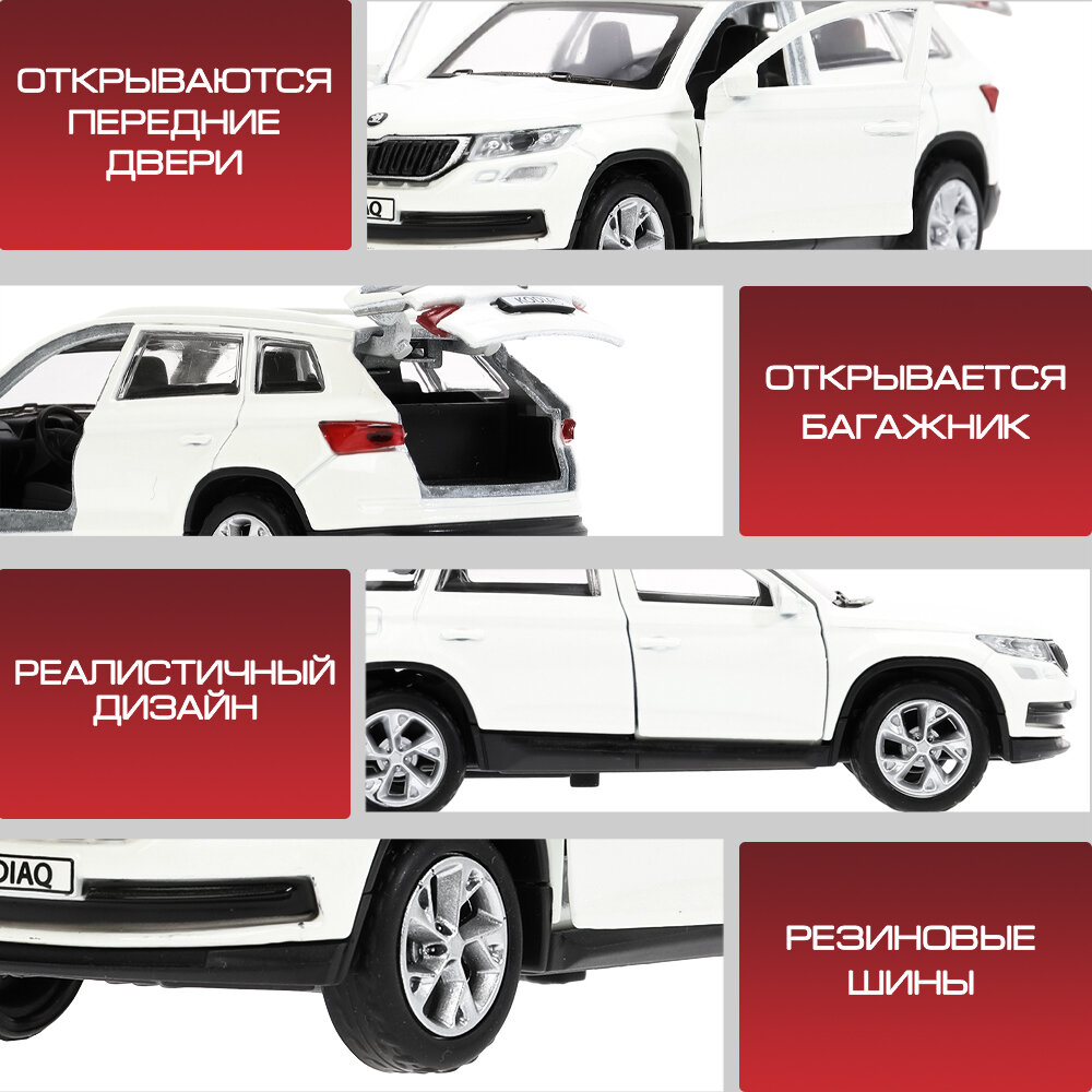 Металлическая модель Технопарк Skoda Kodiaq Шкода Кодиак белая 12 см, откр передние двери и багажник