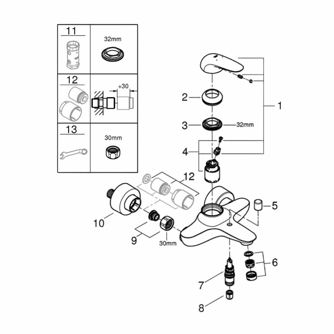 Смеситель для ванны GROHE Eurostyle, хром (23726003)