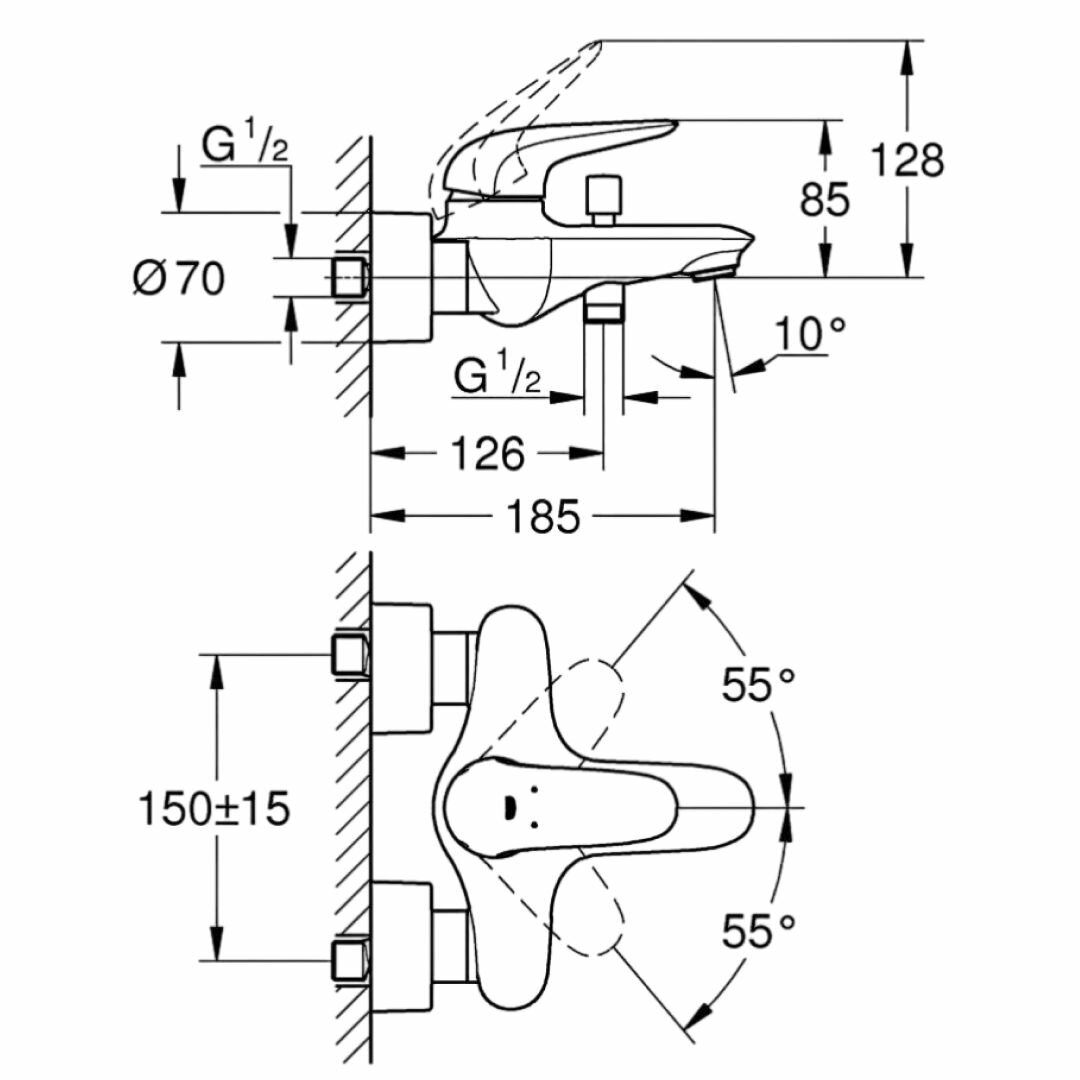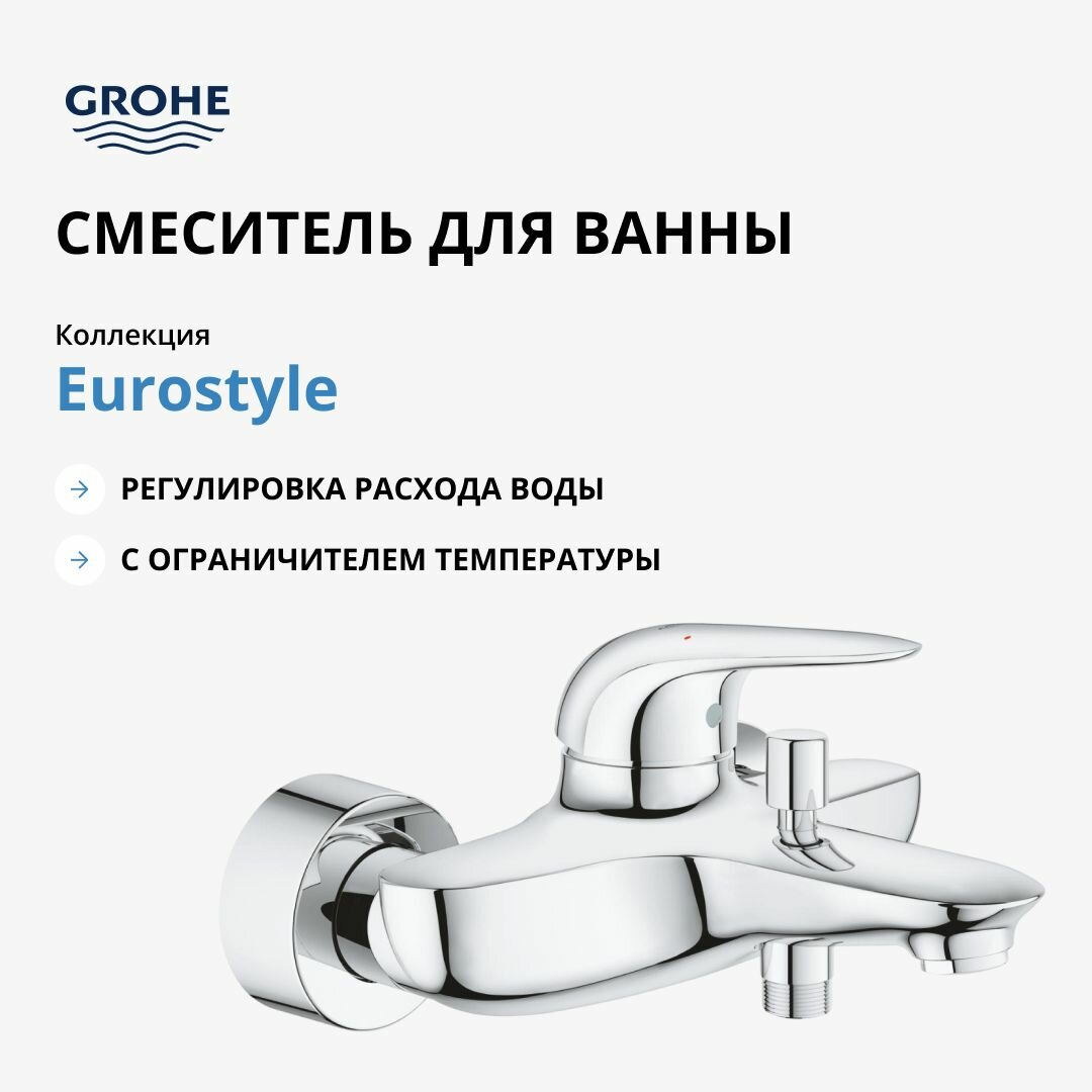 Смеситель для ванны и душа Grohe Eurostyle хром с коротким изливом без лейки однорычажный