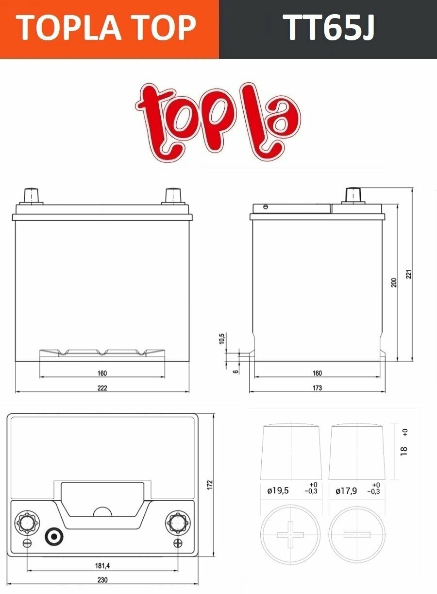 Аккумулятор Topla Top Jis Smf 65 А/Ч Обратная R+ 230X175x220 En650 А Topla арт. 118667 интересное: