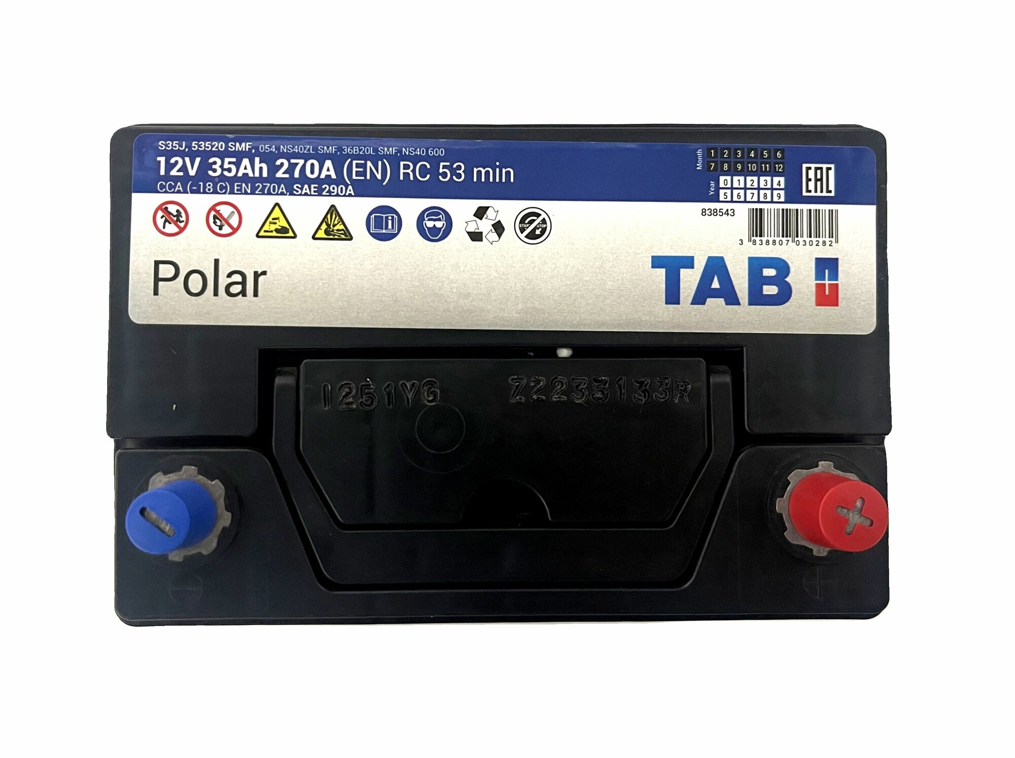 Аккумулятор автомобильный TAB Polar Asia 53520 35 Ah 270A о.п. тонкие клеммы (197x127x227) B19L интересное: