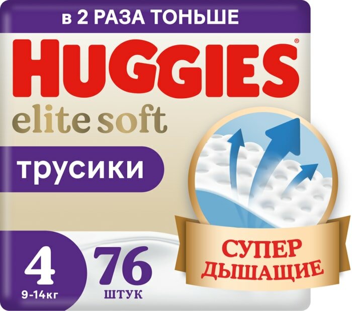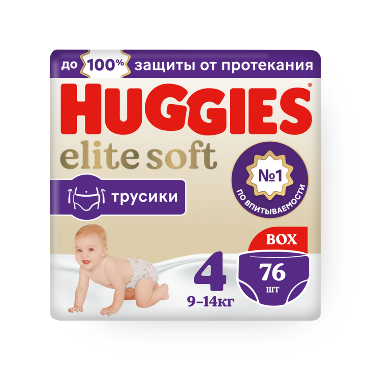 Трусики-подгузники Huggies Elite Soft 4 (9-14кг), 76 шт.