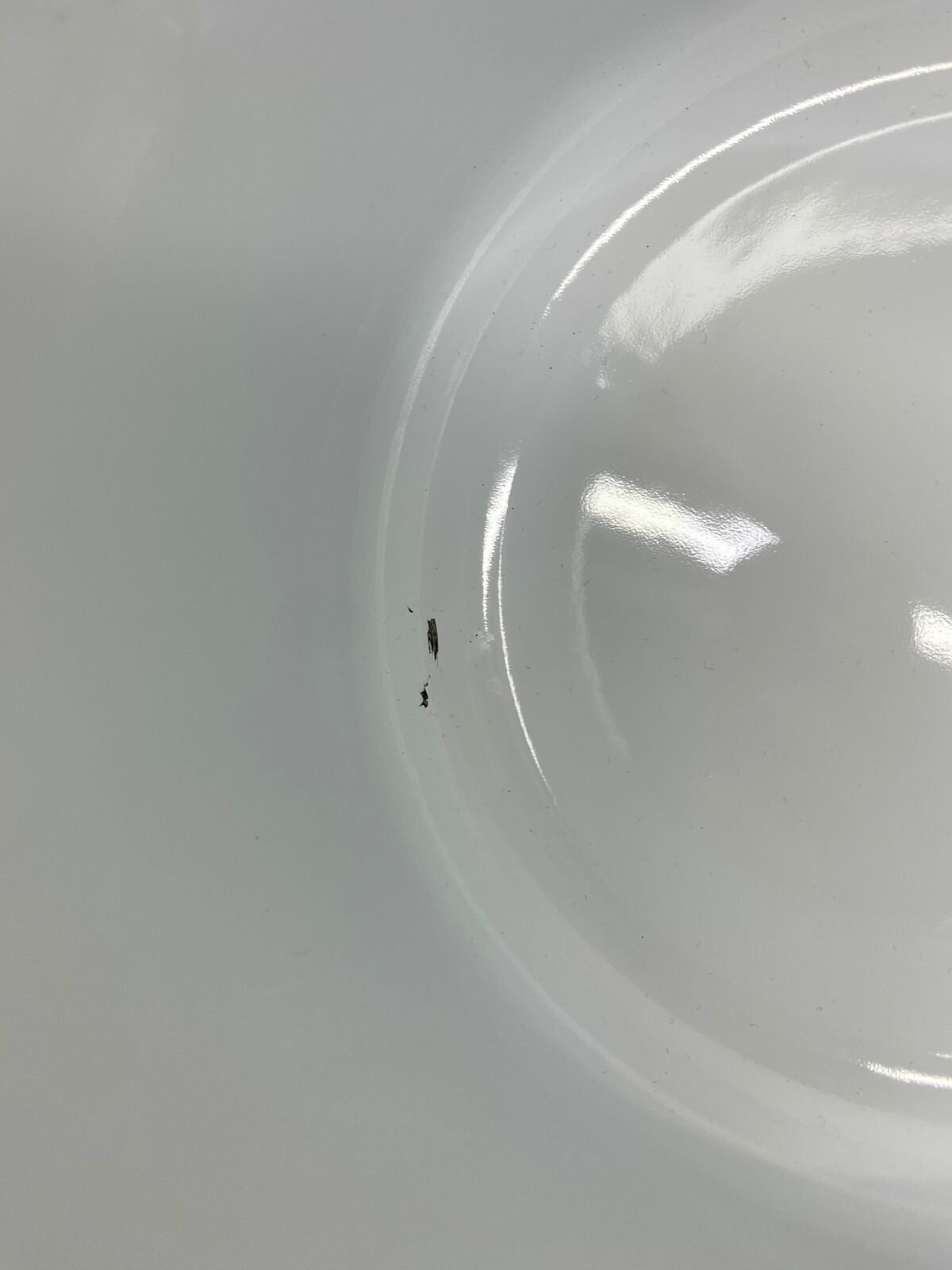 Наклейка на дне с внешней стороны плохо отдирается, остаётся липкий след. Вдоль хромированного ободка крышки сразу появилась коричневая полоса, похоже на ржавчину. |