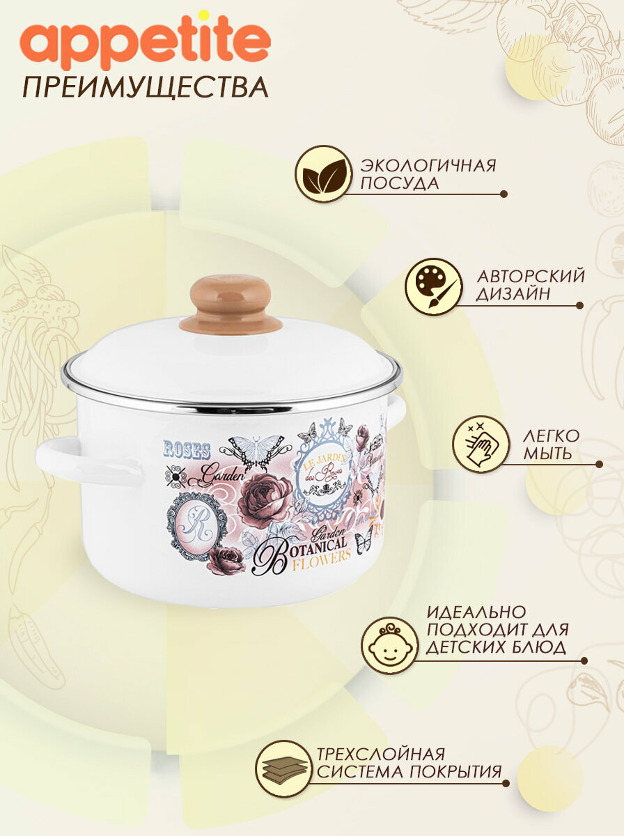 Кастрюля 2,0л Appetite Roses цил эмаль