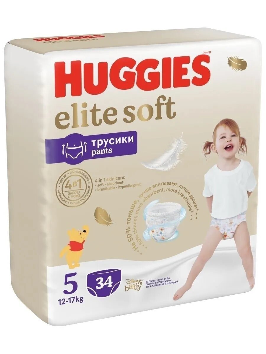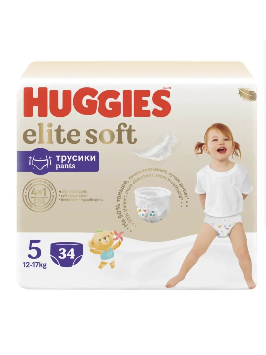Трусики-подгузники Huggies, Elite Soft, размер 5, 12-17 кг., 34 штуки