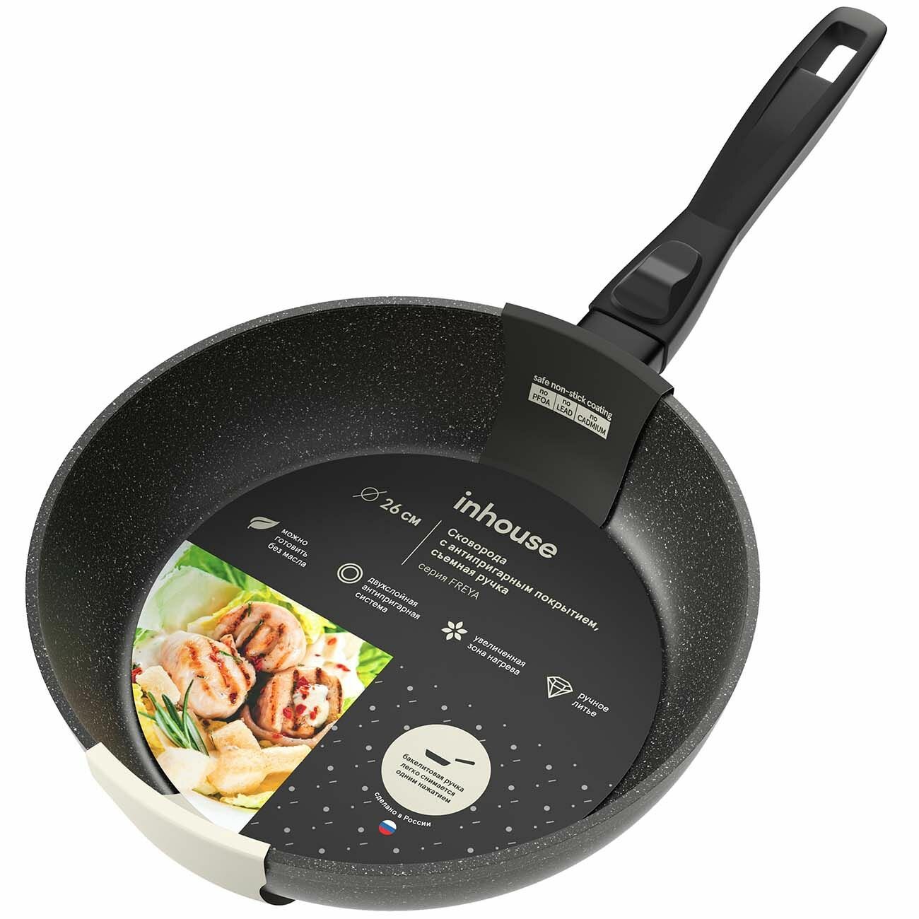 Сковорода (кованый алюминий) Inhouse FREYA 26см, съемная ручка (IHFR26RH) интересное: