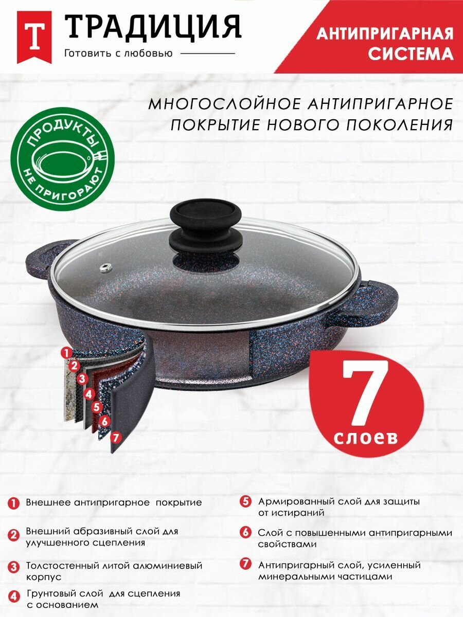 Жаровня Традиция Сапфир ТС9243 антипригарное покрытие литая 24см стеклянная крышка
