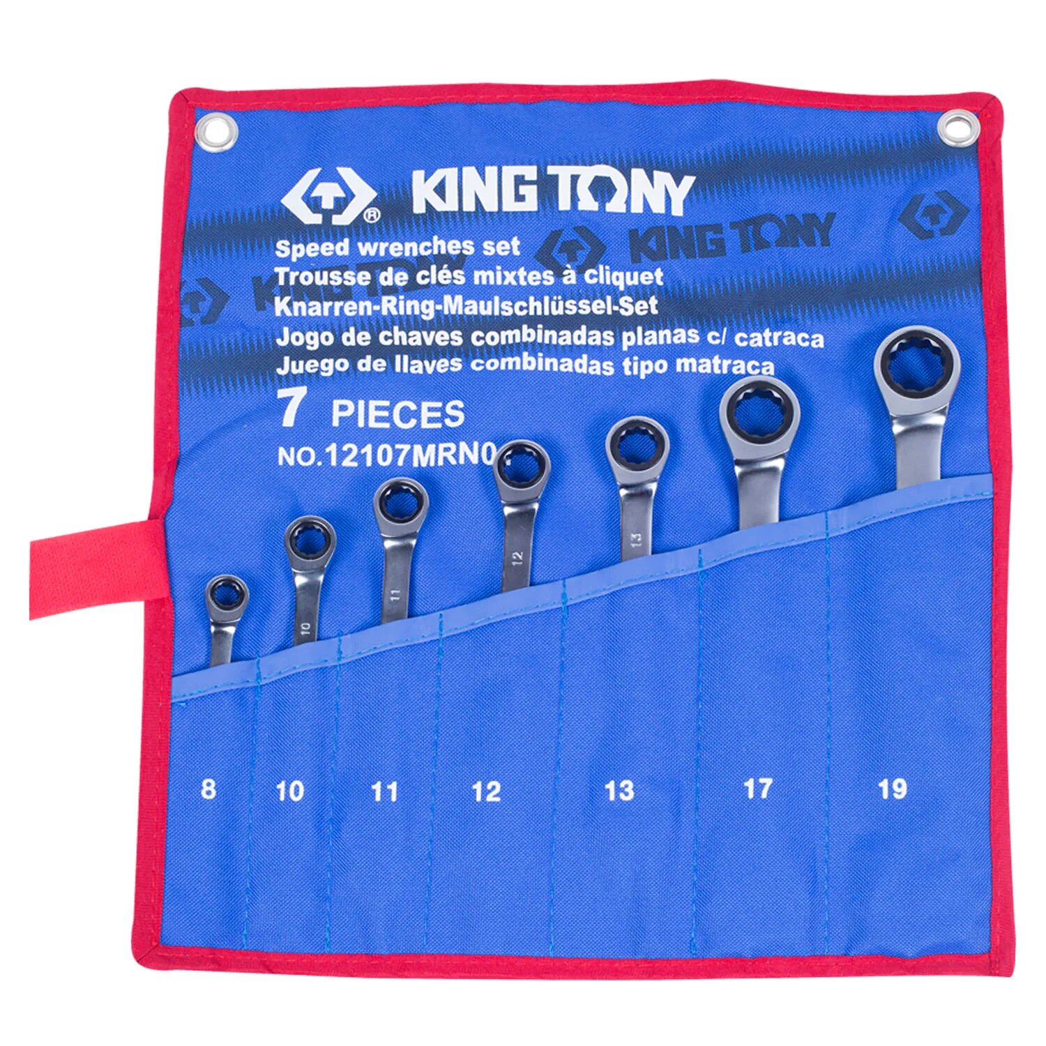Набор комбинированных трещоточных ключей, 10-19 мм, чехол из теторона, 7 предметов KING TONY 12107MRN