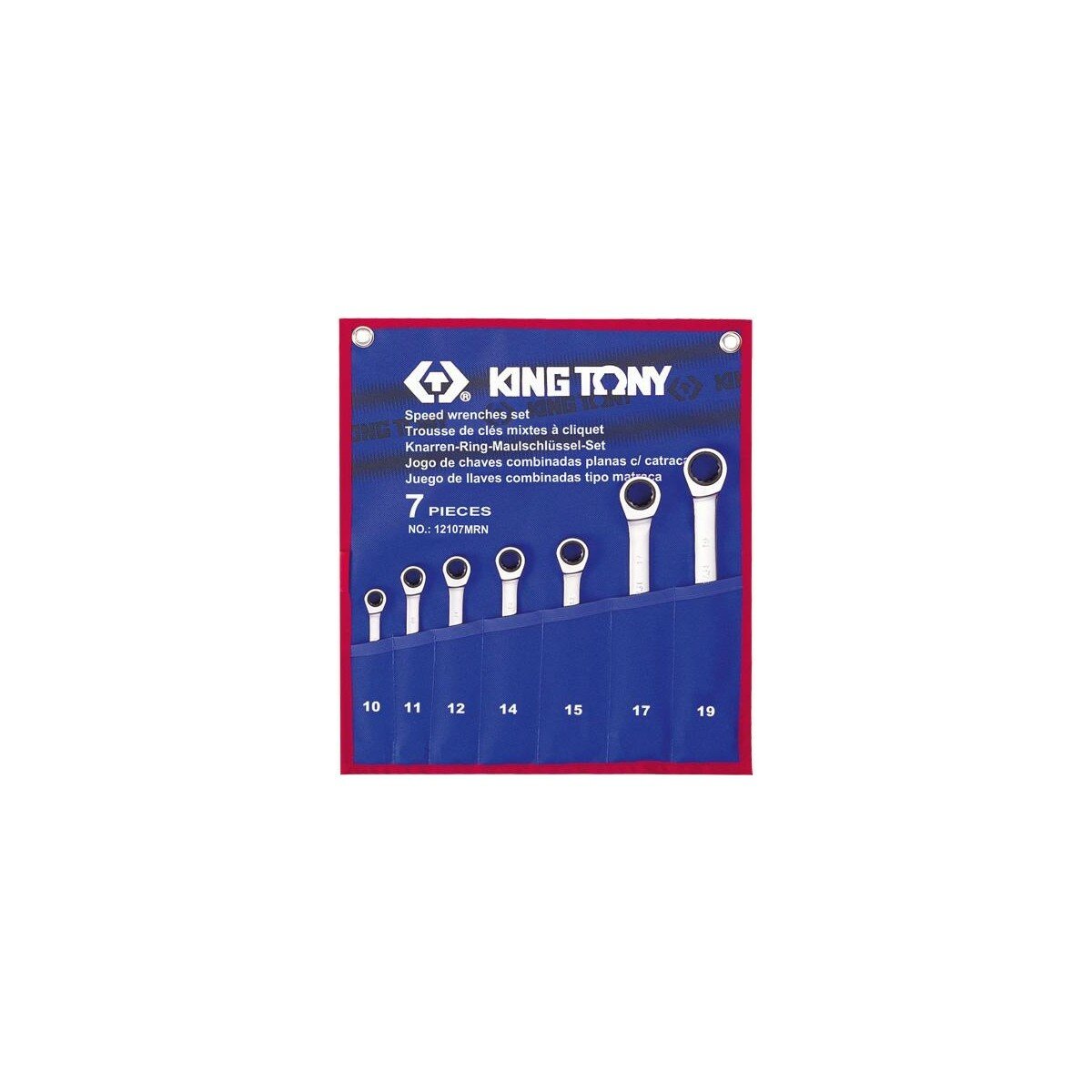 12107MRN, KING TONY Набор комбинированных трещоточных ключей, 10-19 мм, чехол из теторона, 7 предметов