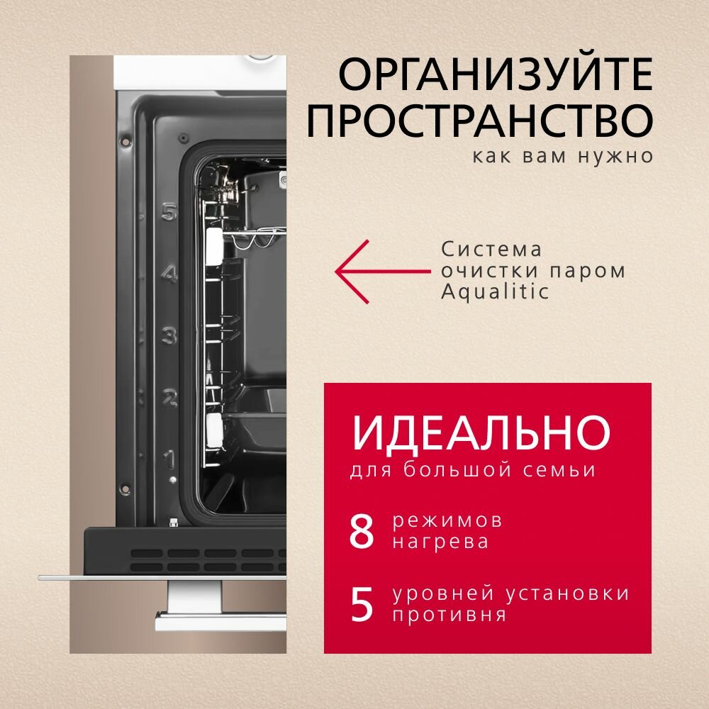 | Режимы нагрева | нижний нагрев, верхний нагрев, верхний нагрев + нижний нагрев, нижний нагрев + конвекция, гриль + конвекция, большой гриль, конвекция |