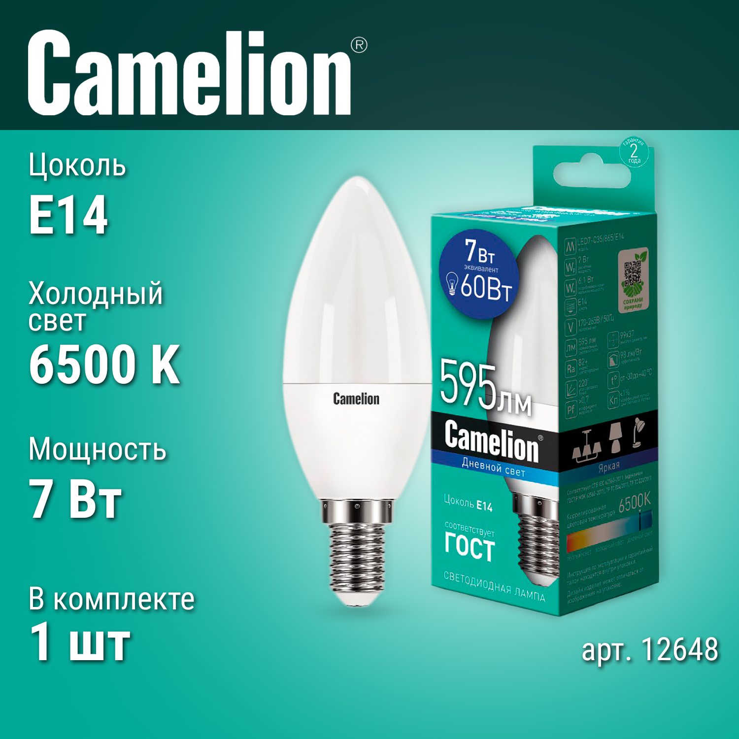 Ниже Вы можете прочитать отзывы на Светодиодная лампочка Camelion LED 7Вт C35 E14 6500K, холодный белый свет, ознакомится с подробными характеристиками, посмотреть интересные обзоры и фотографии на Светодиодная лампочка Camelion LED 7Вт C35 E14 6500K, холодный белый свет.