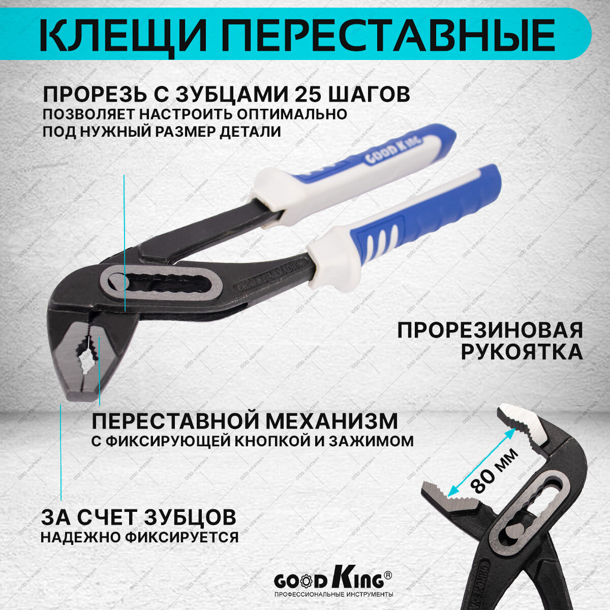 | Шарнирно-губцевый инструмент подробно | плоскогубцы 15 см, длинногубцы 15 см, бокорезы 15 см, клещи переставные 25 см, клещи с фиксатором 10" 25 см |