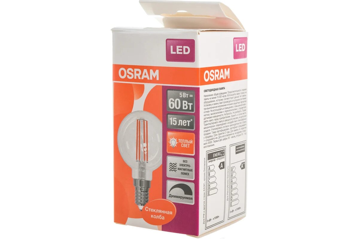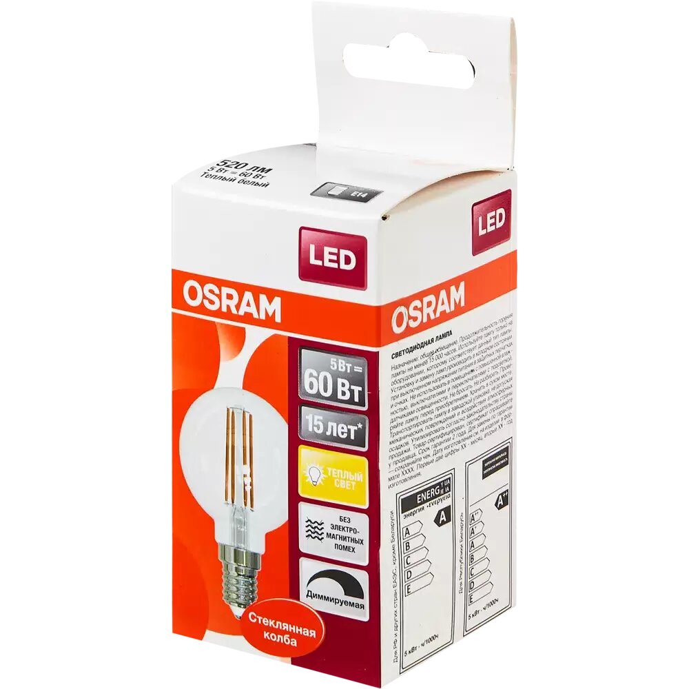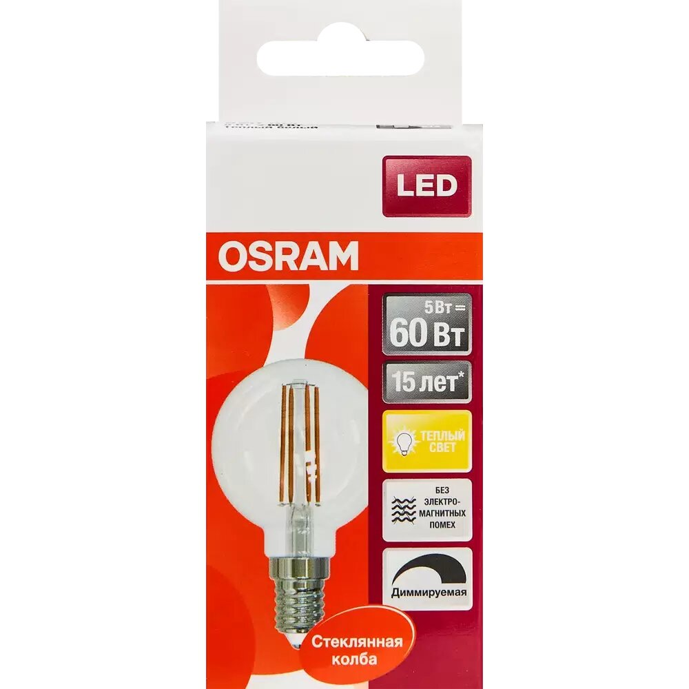 LED DIM 5WТЕПЛ230V FIL E14 ШАР - OSRAM