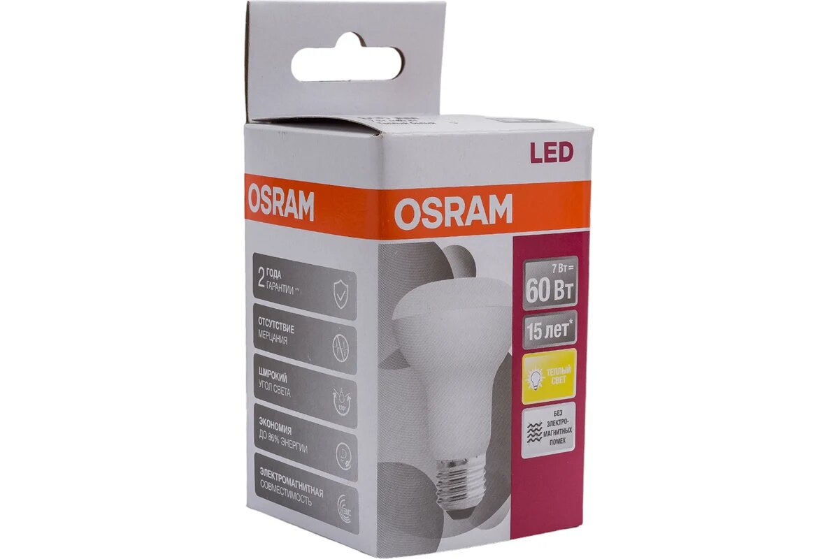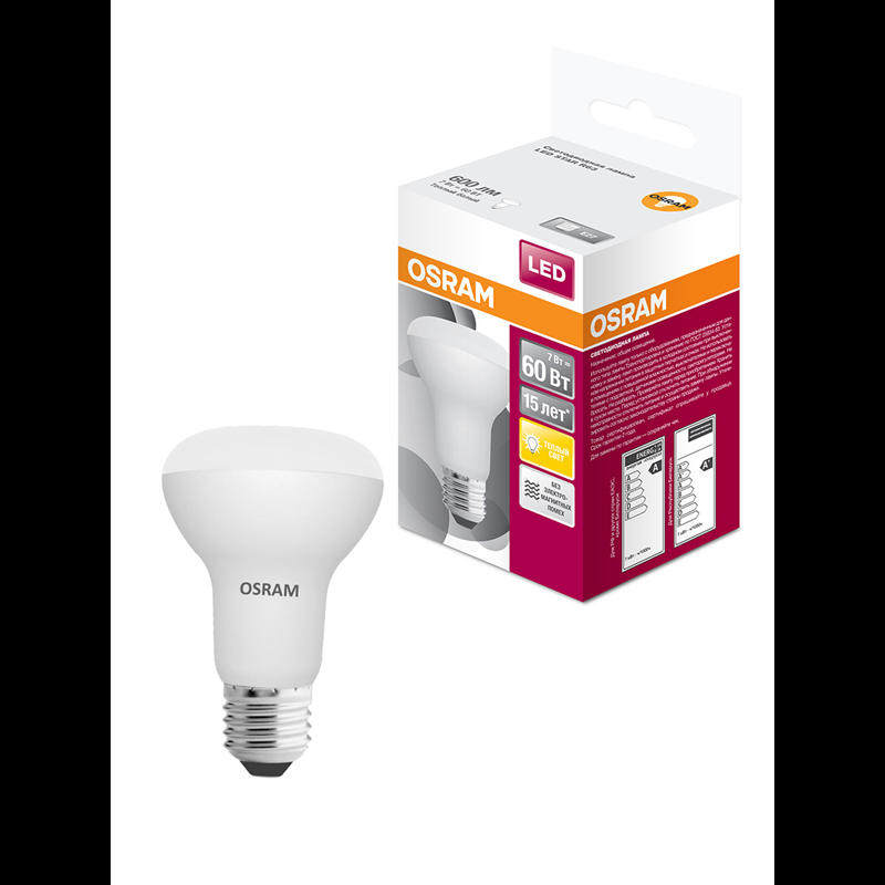 Светодиодная лампа OSRAM LED STAR, R63, 7Вт, E27, 600 Лм, 3000 К, теплый белый свет 4058075282629
