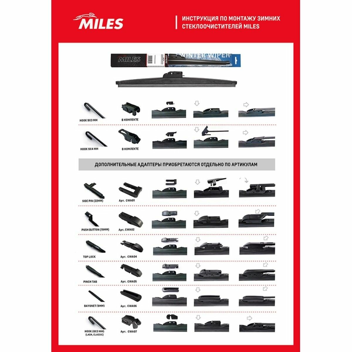 Щетка С/О Зимняя Miles 22/550Мм + Адаптеры Hook 9X3/9X4 Cww22ac Miles арт. CWW22AC