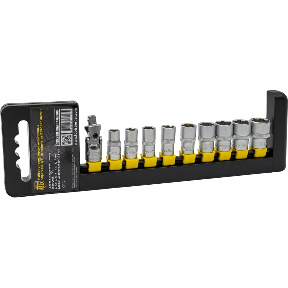 Набор торцевых головок Berger SuperLock BG2032 (посадочный 1/4 дюйма, сталь, 10 шт.)