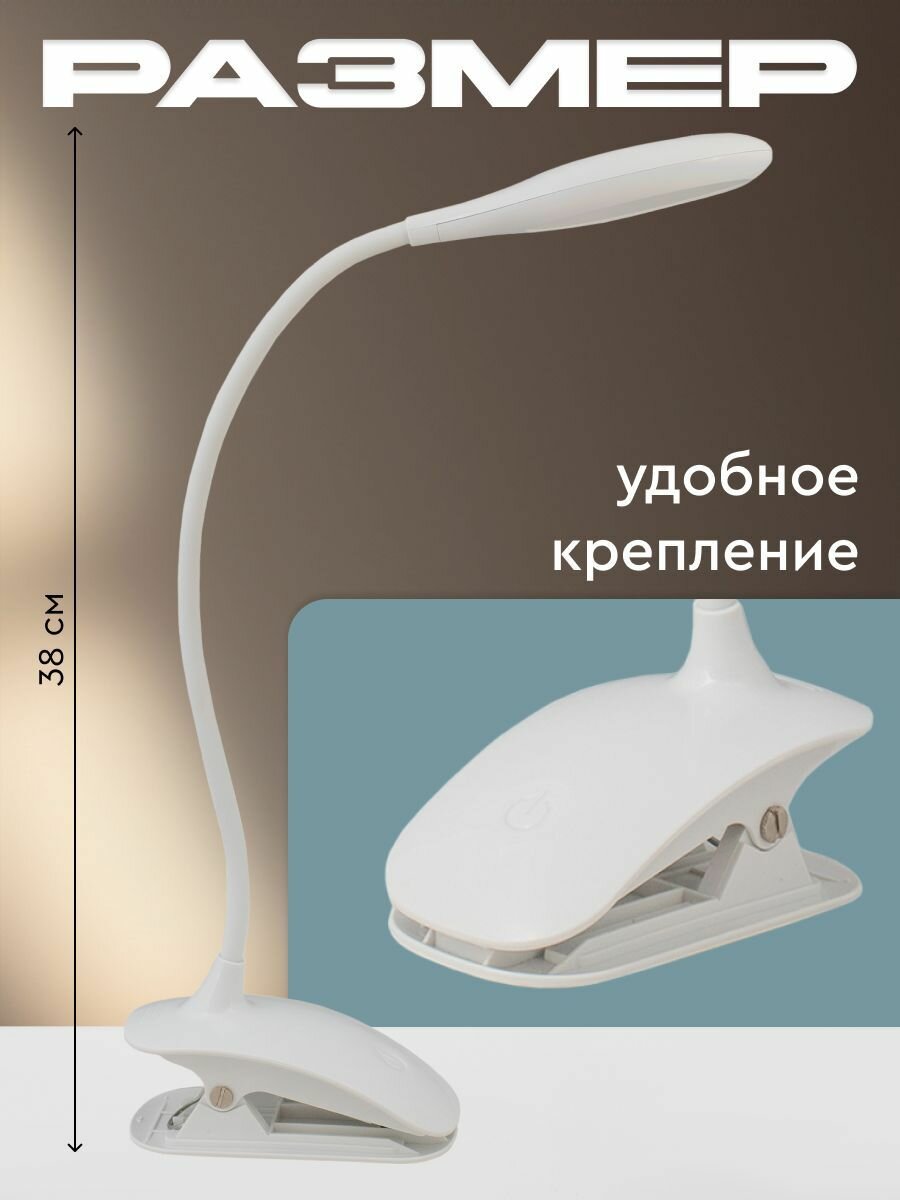 Купить Светильник настольный на прищепке LED старт CT204 5 Вт, 350 Лм (сенсор + диммер), белый