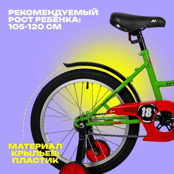 Велосипед Novatrack Strike 18" (2022) (Велосипед NOVATRACK 18" STRIKE зеленый, тормоз нож, крылья корот, защита А-тип)