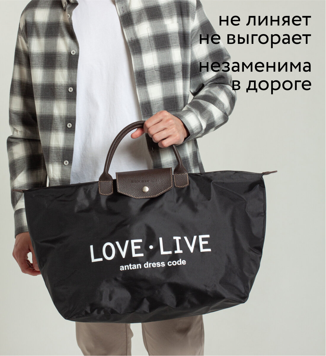 Сумка дорожная женская, мужская, для ручной клади, победа, хозяйственная, спортивная ANTAN 175, Жизнь-любовь, черная