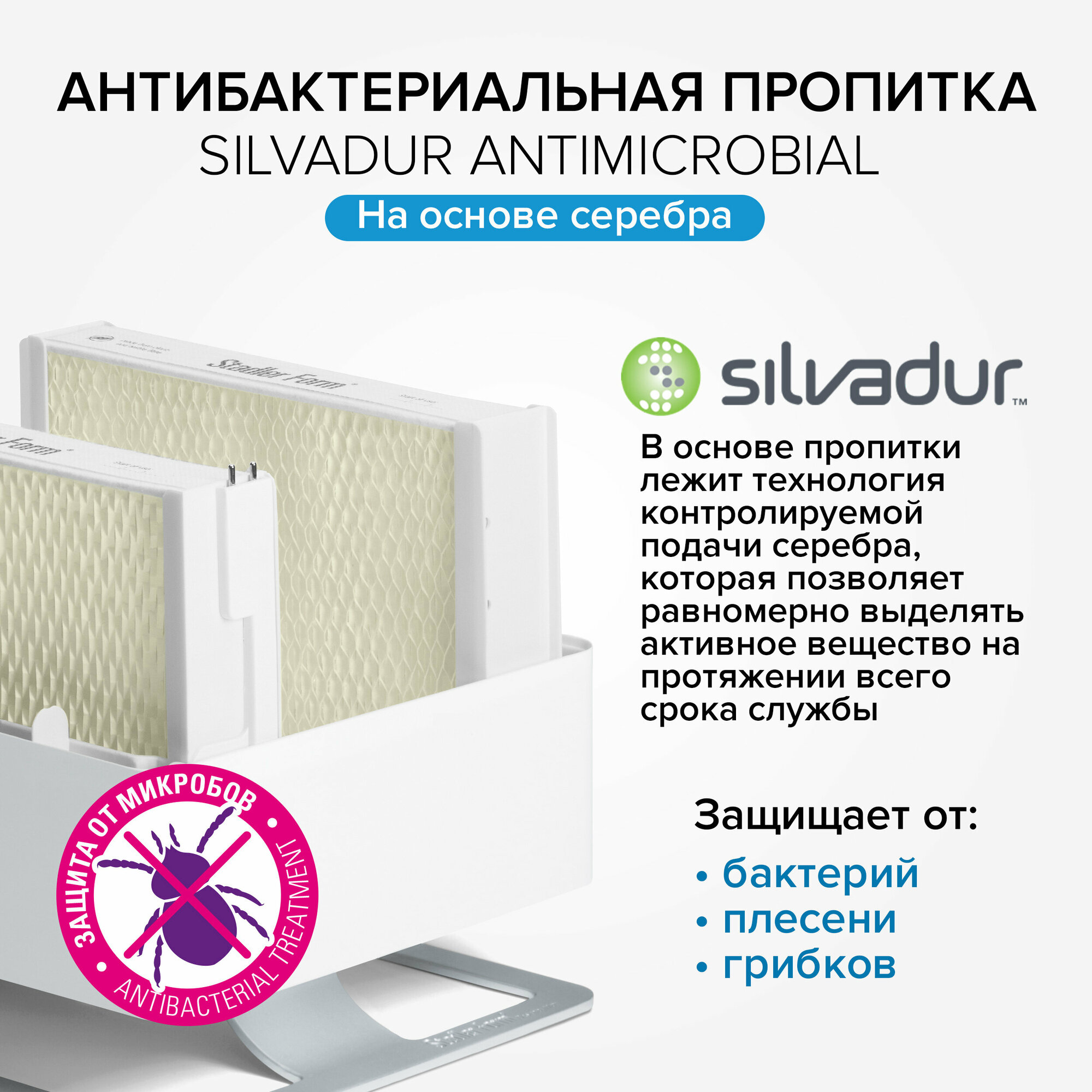 | Дополнительная информация | 12-слойные фильтры изготавливаются из древесных волокон; антибактериальная пропитка SILVADUR™ ANTIMICROBIAL защищает от бактерий, плесени и грибка; рекомендуемый срок эксплуатации 3 месяца; материал: древесные волокна и влагопоглощающий агент |