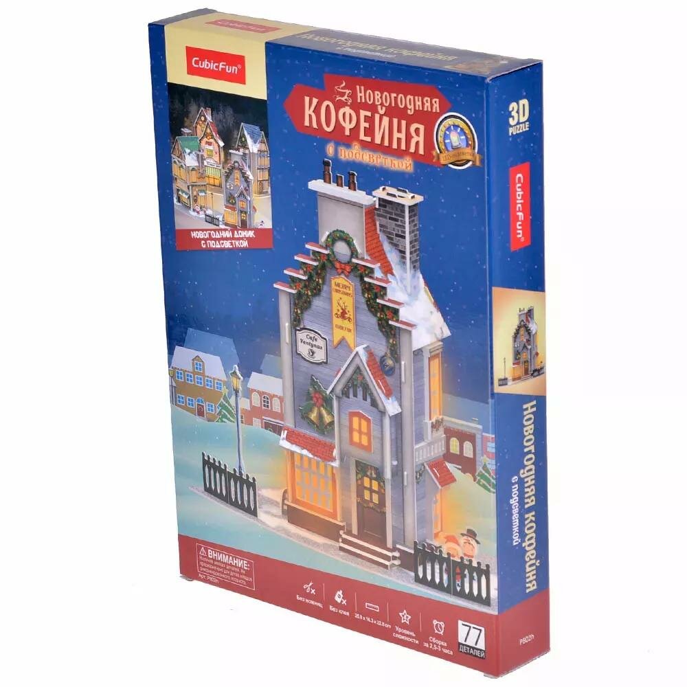 Пазл CubicFun Новогодняя кофейня с LED-подсветкой 3D 77элементов P802h