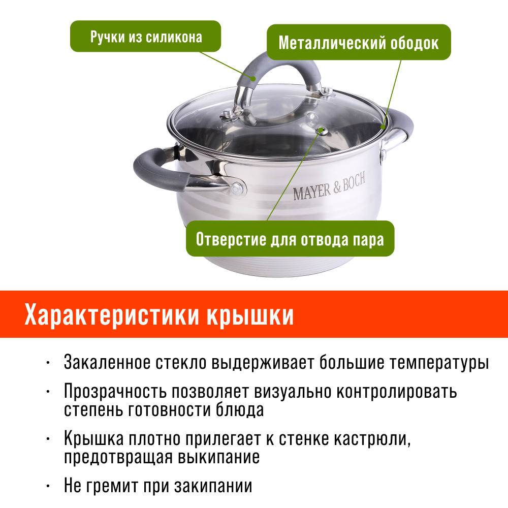 СохранитьКастрюля нержавеющая сталь со стеклянной крышкой 3,9 л / для всех видов плит, в т.ч. для индукционных / Mayer&Boch интересное: