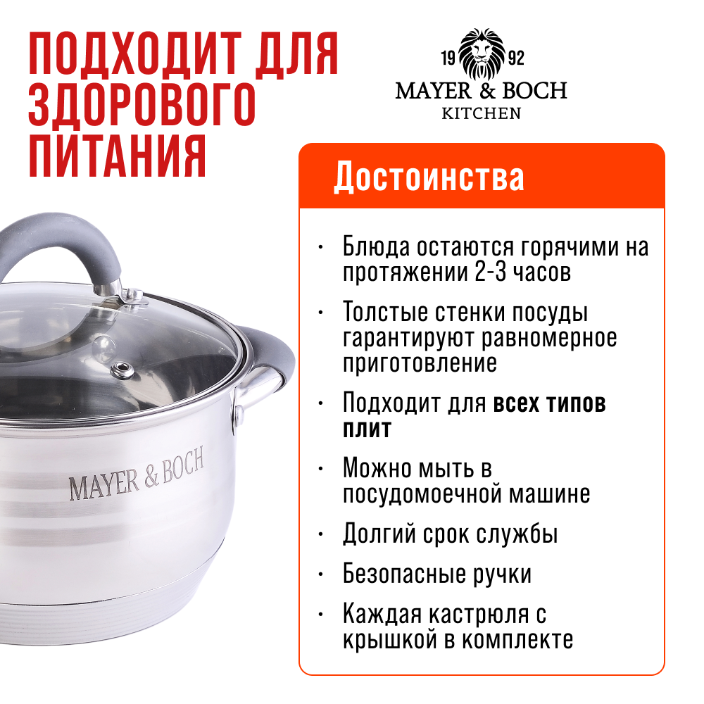 Кастрюля 2,9 л из нержавеющей стали MAYER&BOCH 30943