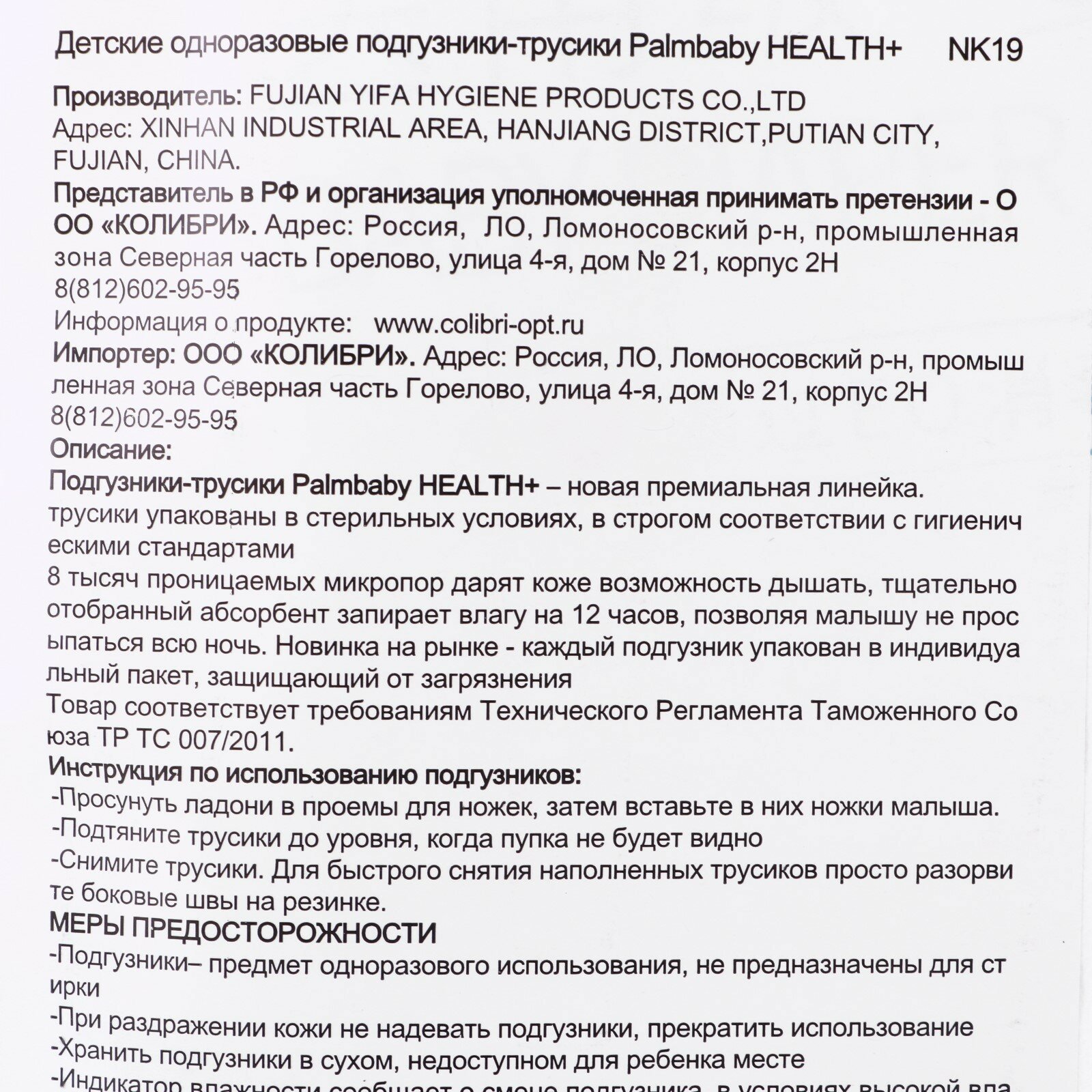 | Дополнительная информация | каждый подгузник имеет индивидуальную упаковку; застежка-молния (Zip-Lock) у упаковки |