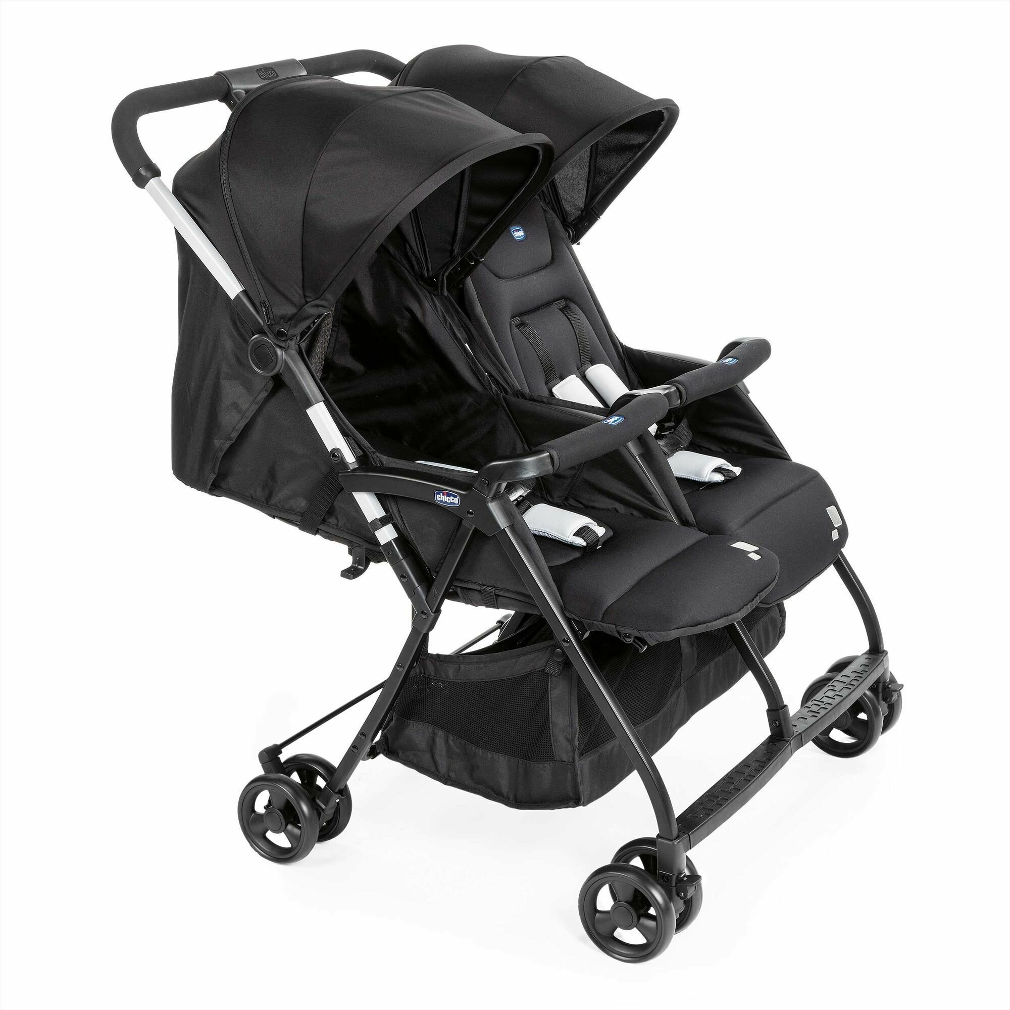 Коляска прогулочная детская для двойни Chicco OHLALA TWIN для близнецов или детей погодков , для новорожденных 0+ легкая и компактная, складная черная, вещи для детей
