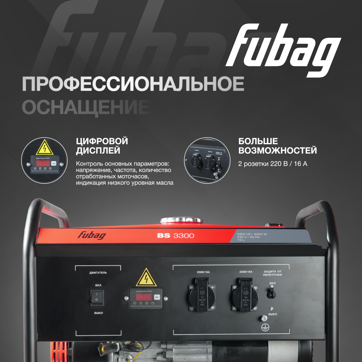 СохранитьГенератор бензиновый электростанция FUBAG BS 3300, 3 кВт, 220 В интересное: