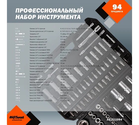 AV Steel Набор инструмента "" 94 предм. профессион. AV-011094