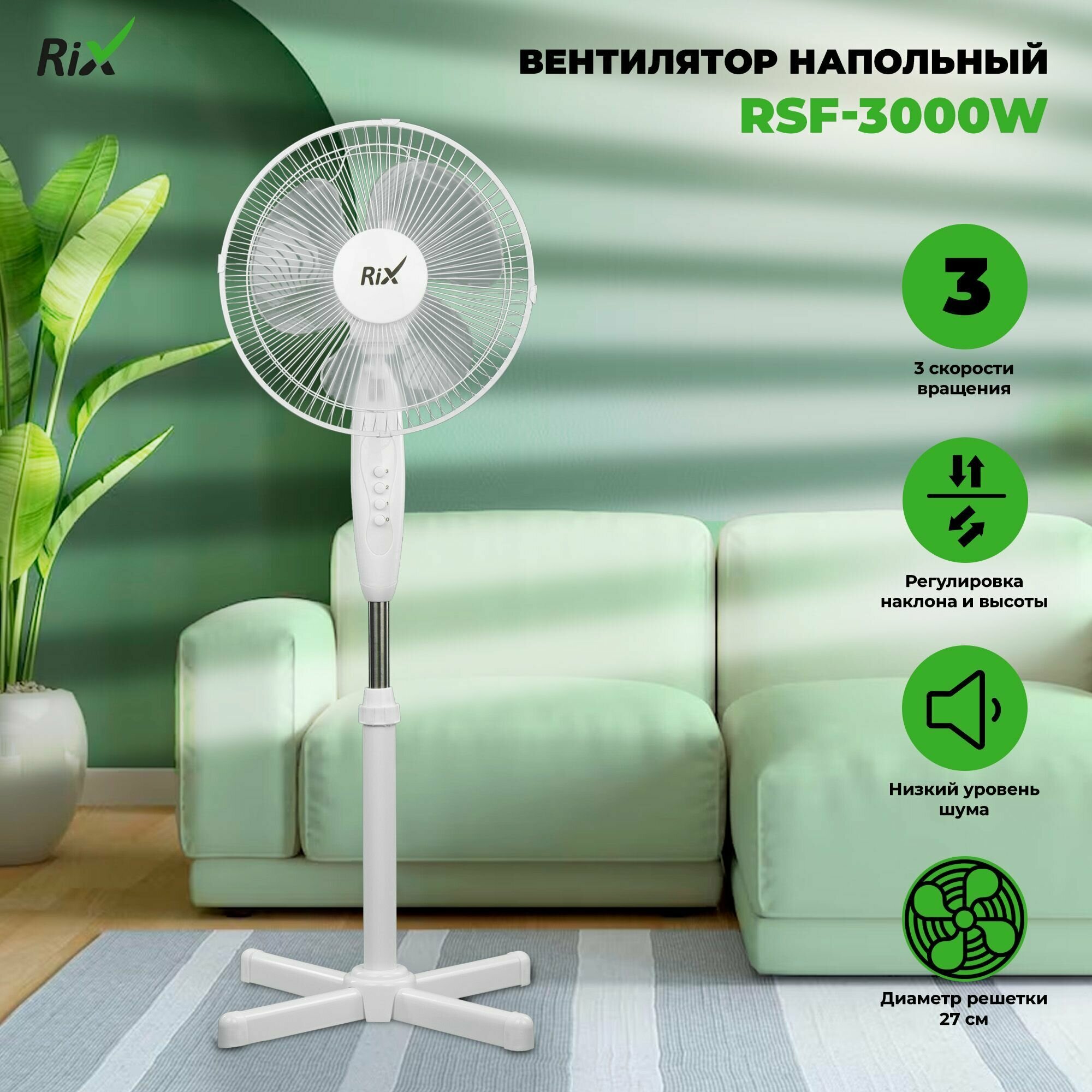 Напольный бытовой вентилятор RIX Rsf-3000w цвет белый, 35Вт 33922 .