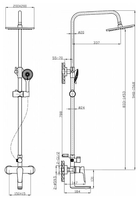 | Количество режимов верхнего душа | 1 |