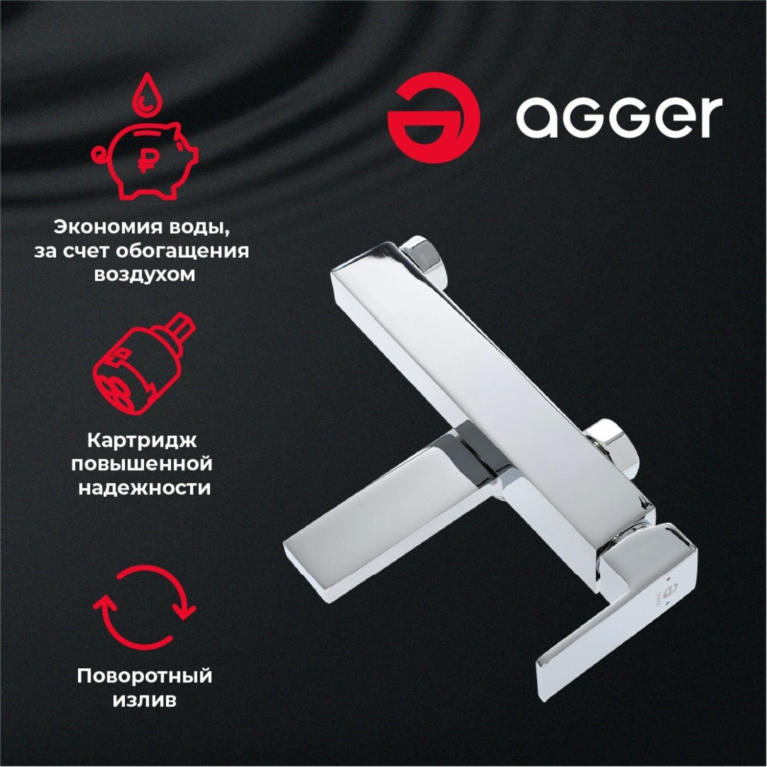 Agger Great A2810000 Однозахватный смеситель для ванны/душа с поворотным изливом, хром