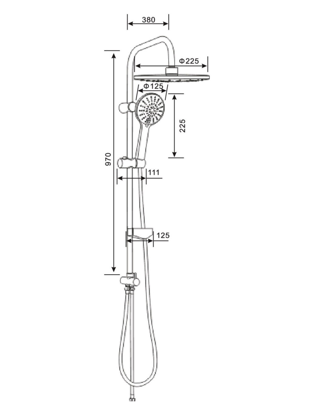 | Комплектация | верхний душ / шланг для душа / душевая лейка / душевая штанга |
