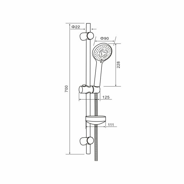| Дополнительная информация | высота стойки для душа: 700 мм; диаметр душевой лейки: 90 мм |