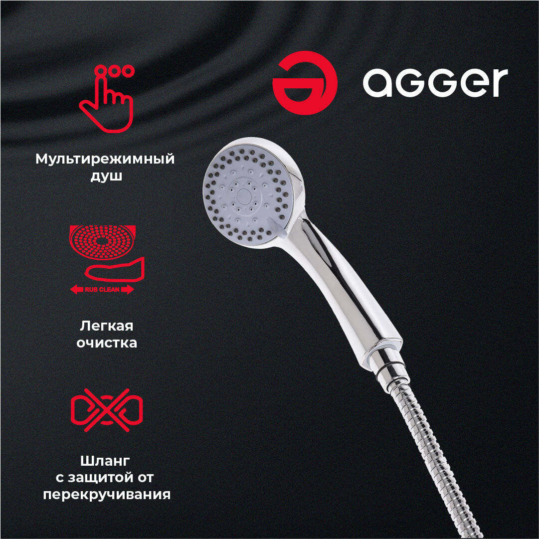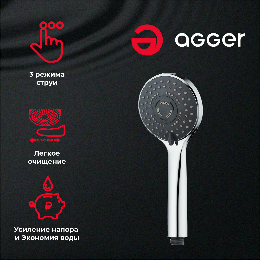 гарнитур душевой AGGER Wave 3 режима хром интересное: