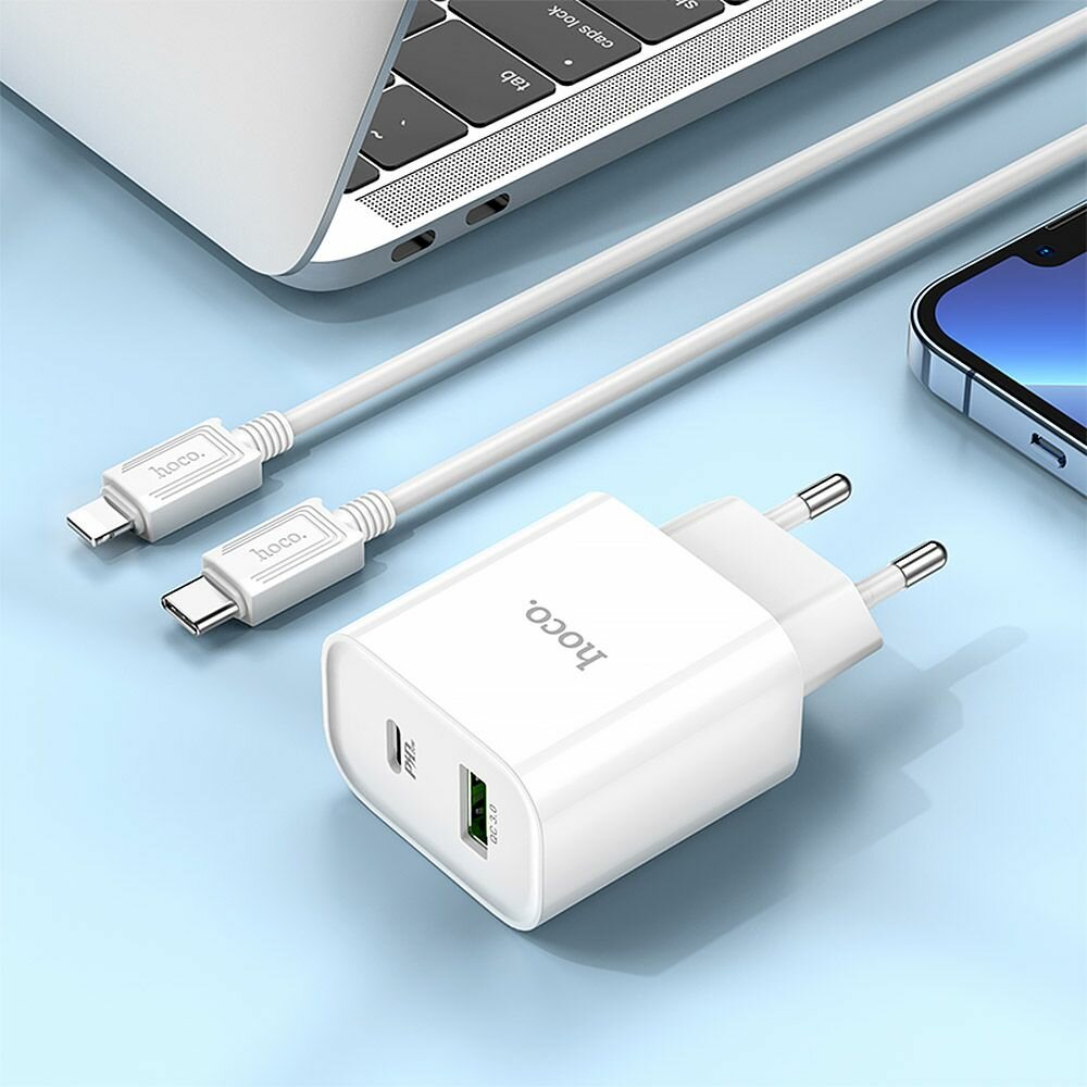 Зарядное устройство Hoco C80A Rapido 1xUSB 1xUSB Type-C 3А PD20W QC3.0 USB Type-C + Cable Lightning 1m White 0L-00050625
