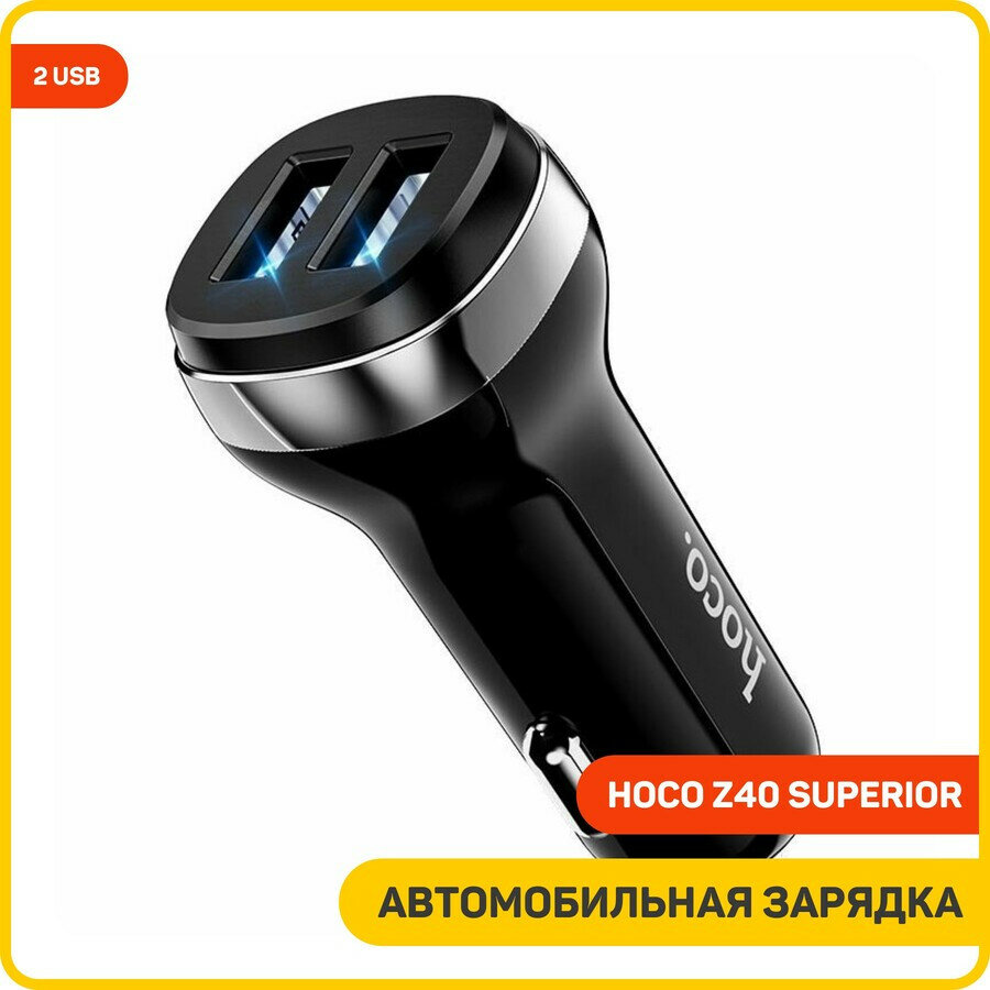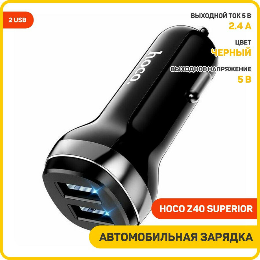 Автомобильное зарядное устройство (АЗУ) Hoco Z40 Superior (2 USB) 2.4 А, черный