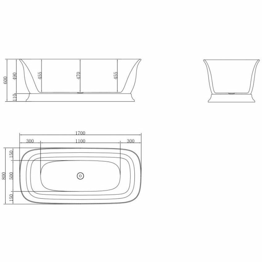 Ванна акриловая отдельностоящая BELBAGNO BB400-1700-800